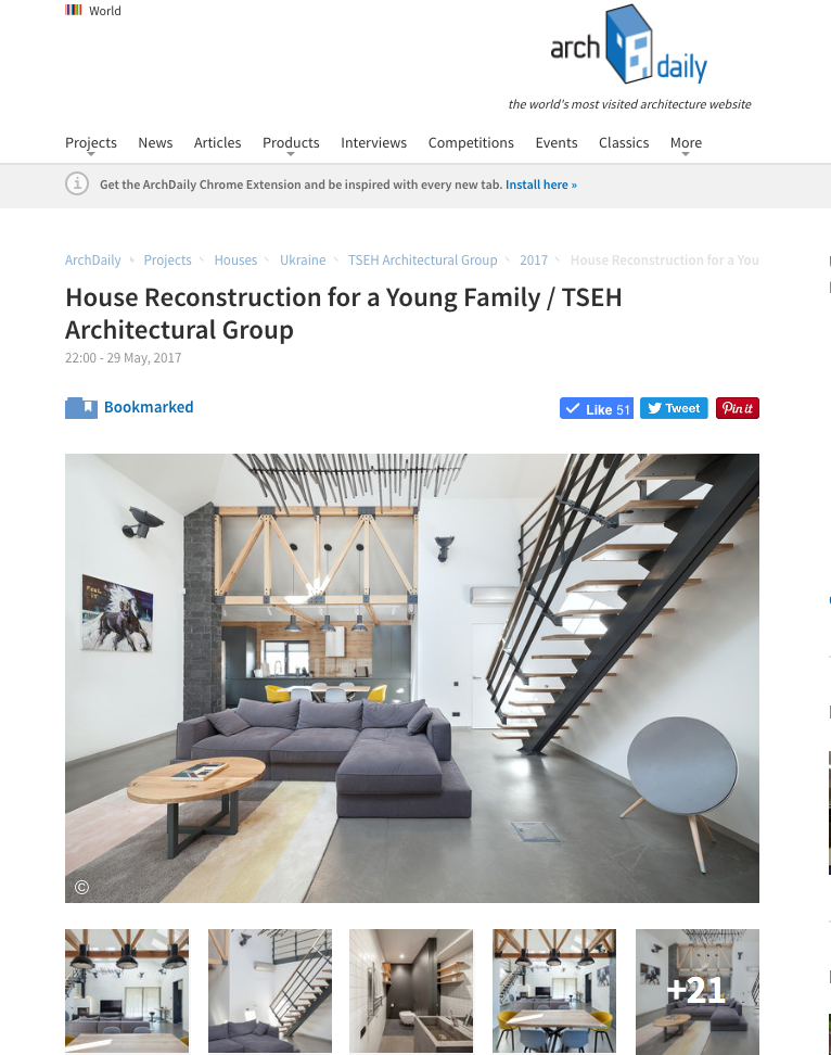 Компанія “АРХІТЕКТУРНА ГРУПА ЦЕХ” більше 10 років створює сучасну та актуальну архітектуру в Україні та за її межами. За плечима наших архітекторів великий досвід проектування, публікації в друкованих та інтернет виданнях таких, як ArchDaily, BRAUN, architecturelover, WORLD INTERIORS NEWS, arthitectural.com, «HQ ROOM”, «Inhabitat», HIS, hqroom, ID.Interior, DMN1R, Pragmatika і багатьох інших, перші премії архітектурних та дизайн-конкурсів: Гран-прі UkrainianUrbanAwards 2021, Интерьер года 2021, Artspace 2021, V Eastern Europe Real Estate Awards 2019 , Artspace 2019, Kazakhstan Interior Awards 2015, WORKSPACE INTERIORS 2014, ИНТЕР’YEAR 2014, ИНТЕР’YEAR 2012, Best Office Awards 2012, «Объективность внутри 2010»